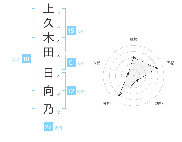 上久木田 日向乃さんを姓名の画数から五運を鑑定