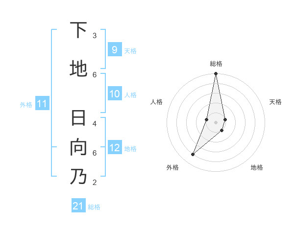下地 日向乃さんを姓名の画数から五運を鑑定