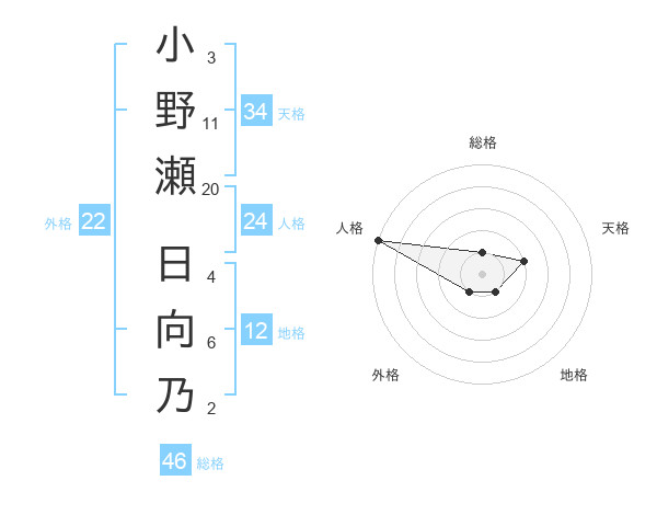 小野瀬 日向乃さんの外格は22画の1点!