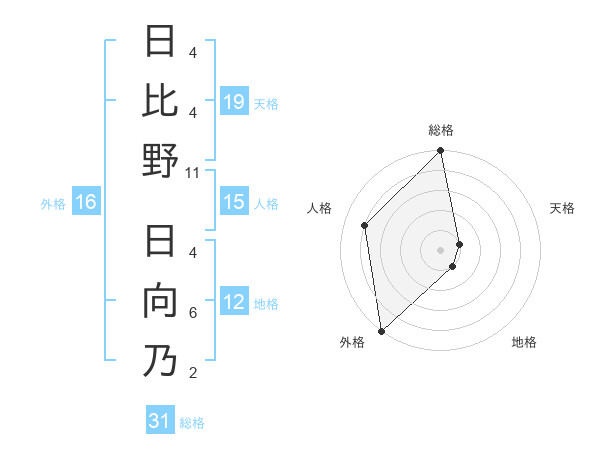 日比野 日向乃さんを姓名の画数から五運を鑑定