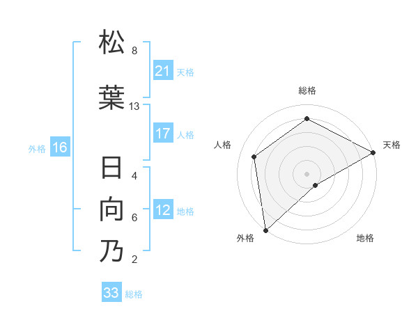 松葉 日向乃さんを姓名の画数から五運を鑑定