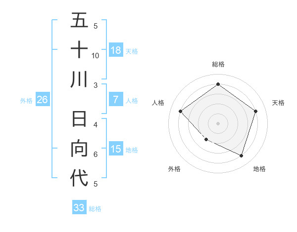 五十川 日向代さんを姓名の画数から五運を鑑定