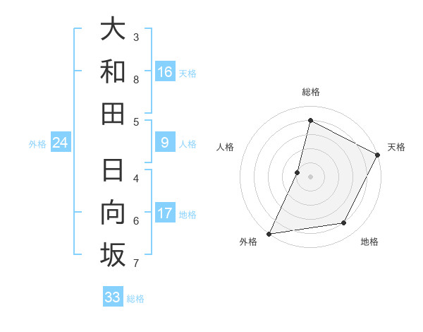 大和田 日向坂さんの総格は33画の4点!