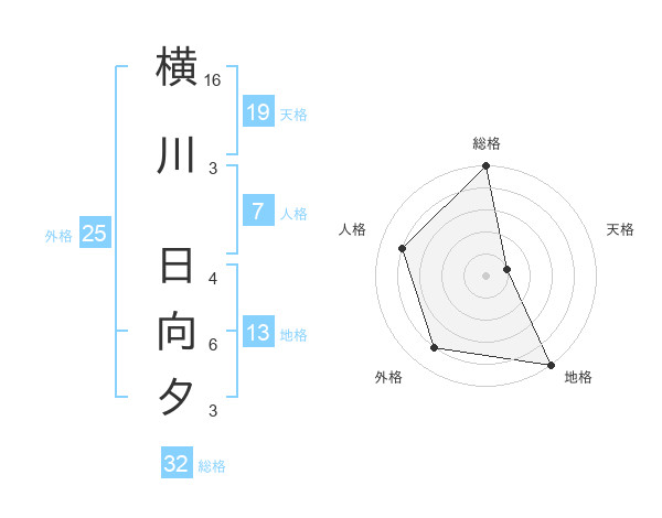 横川 日向夕さんを姓名の画数から五運を鑑定