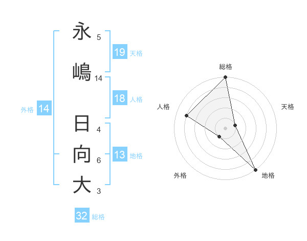 永嶋 日向大さんを姓名の画数から五運を鑑定
