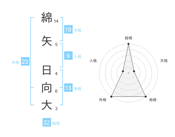 綿矢 日向大さんを姓名の画数から五運を鑑定