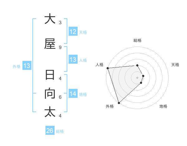 大屋 日向太さんの外格は13画の5点