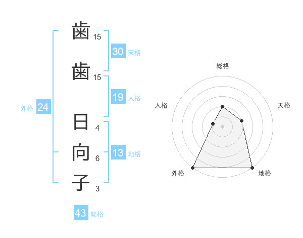 歯歯 日向子さんの天格は30画の2点!