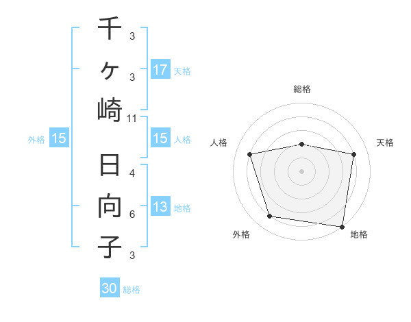 千ヶ崎 日向子さんの天格は17画の4点!