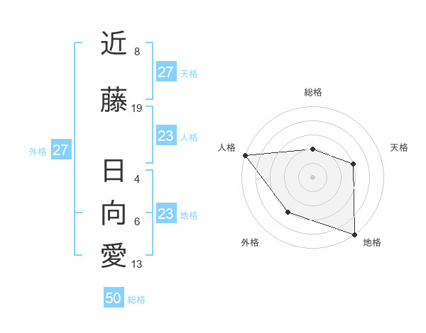 近藤 日向愛さんを姓名の画数から五運を鑑定