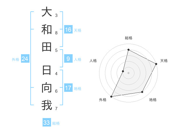 大和田 日向我さんを姓名の画数から五運を鑑定