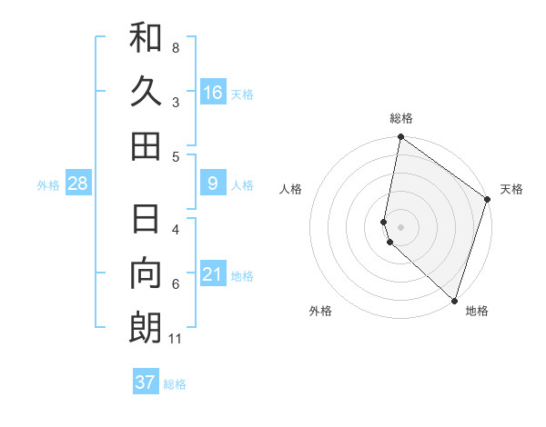 和久田 日向朗さんを姓名の画数から五運を鑑定