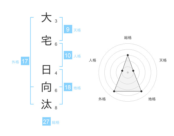大宅 日向汰さんの総格は27画の3点!