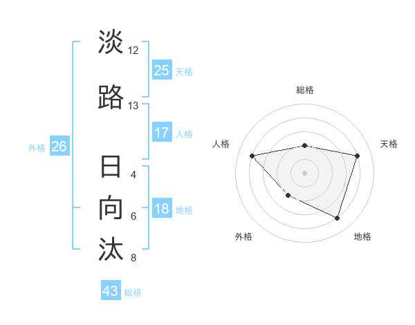 淡路 日向汰さんを姓名の画数から五運を鑑定