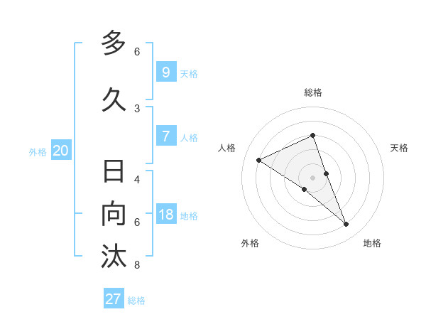 多久 日向汰さんの地格は18画の4点!