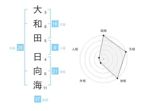 大和田 日向海さんを姓名の画数から五運を鑑定