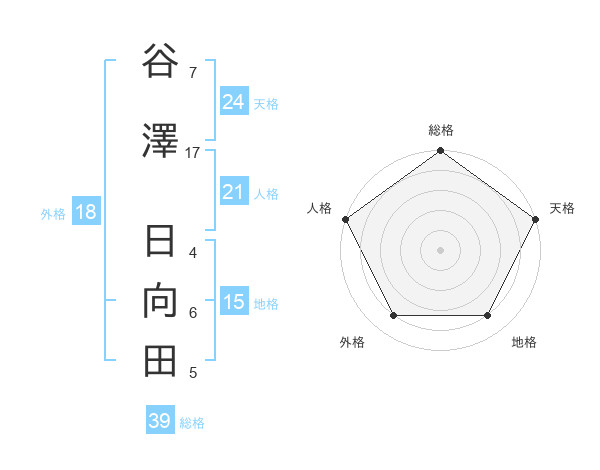 谷澤 日向田さんの天格は24画の5点!