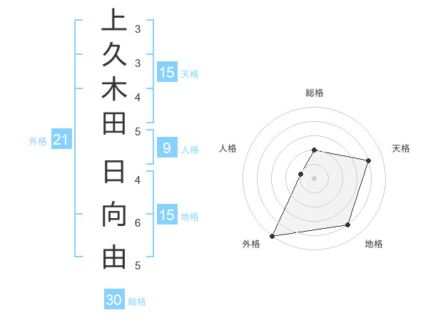 上久木田 日向由さんを姓名の画数から五運を鑑定