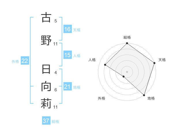 古野 日向莉さんの総格は37画の5点