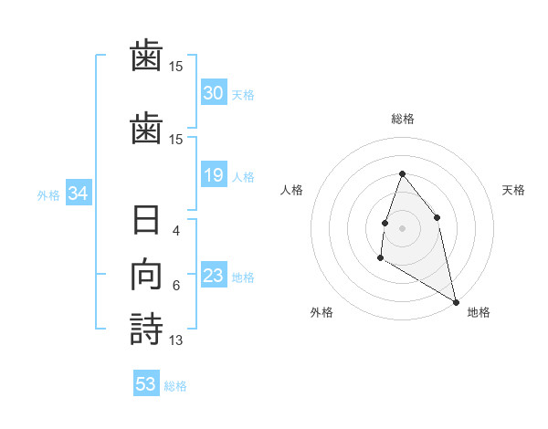歯歯 日向詩さんを姓名の画数から五運を鑑定
