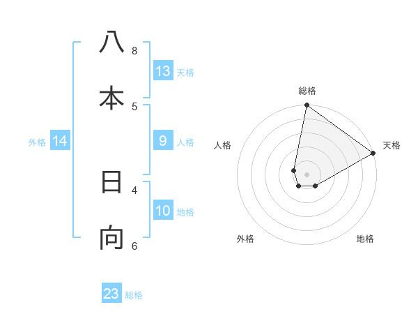 八本 日向さんの総格は23画の5点!