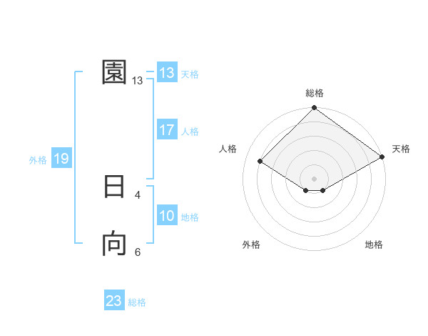 園 日向さんを姓名の画数から五運を鑑定