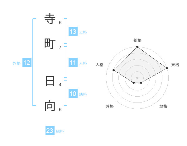 寺町 日向さんの総格は23画の5点!