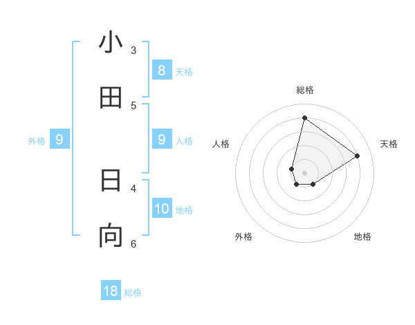 小田 日向さんの天格は8画の4点!
