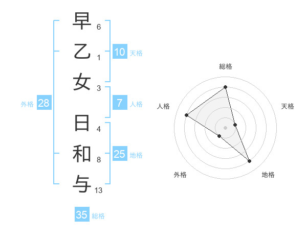 早乙女 日和与さんを姓名の画数から五運を鑑定
