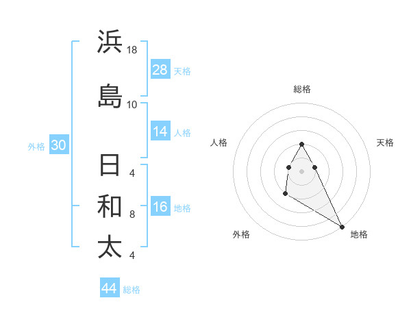 浜島 日和太さんを姓名の画数から五運を鑑定