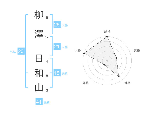 柳澤 日和山さんの総格は41画の5点!