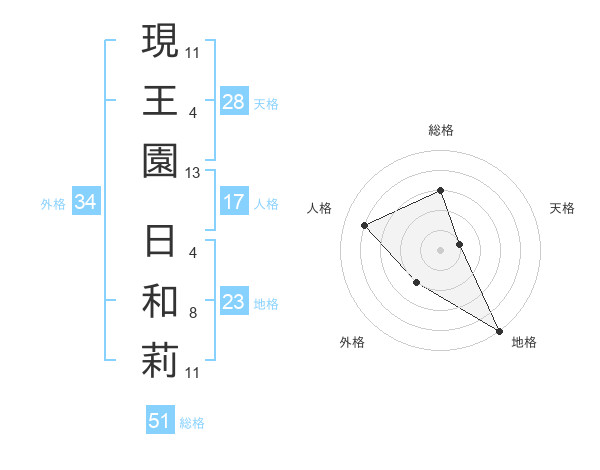 現王園 日和莉さんを姓名の画数から五運を鑑定