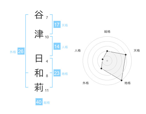 谷津 日和莉さんを姓名の画数から五運を鑑定