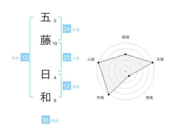 五藤 日和さんの外格は13画の5点!