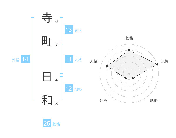 寺町 日和さんの総格は25画の4点!