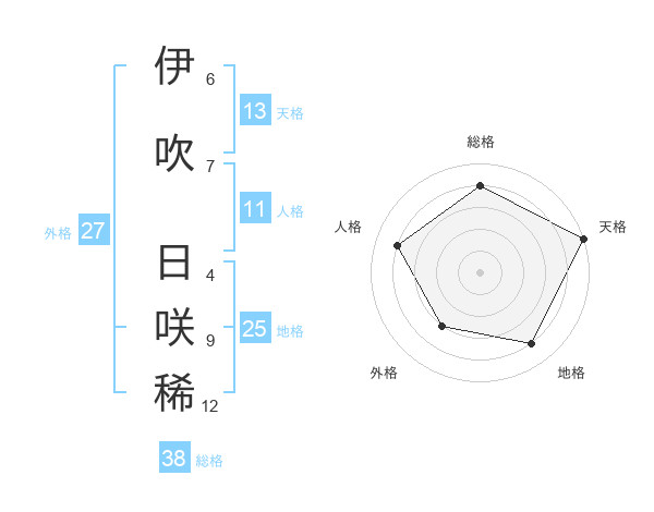 伊吹 日咲稀さんを姓名の画数から五運を鑑定