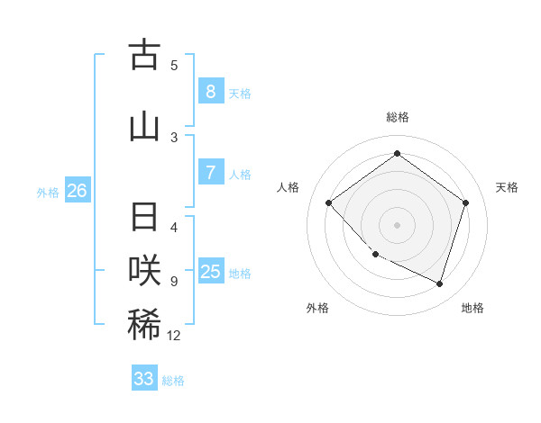 古山 日咲稀さんを姓名の画数から五運を鑑定