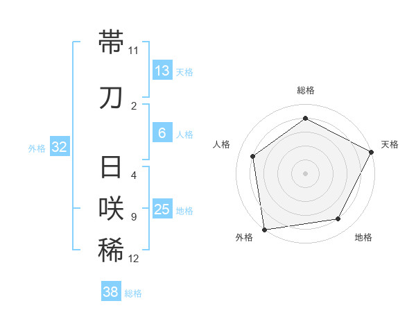 帯刀 日咲稀さんを姓名の画数から五運を鑑定