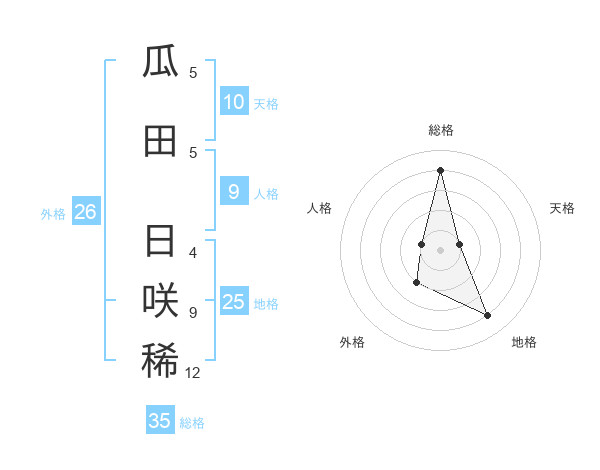 瓜田 日咲稀さんを姓名の画数から五運を鑑定