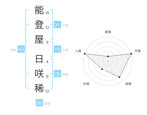 能登屋 日咲稀さんを姓名の画数から五運を鑑定