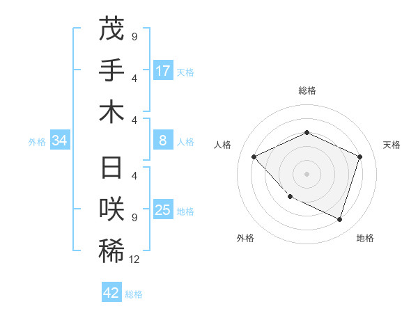 茂手木 日咲稀さんを姓名の画数から五運を鑑定