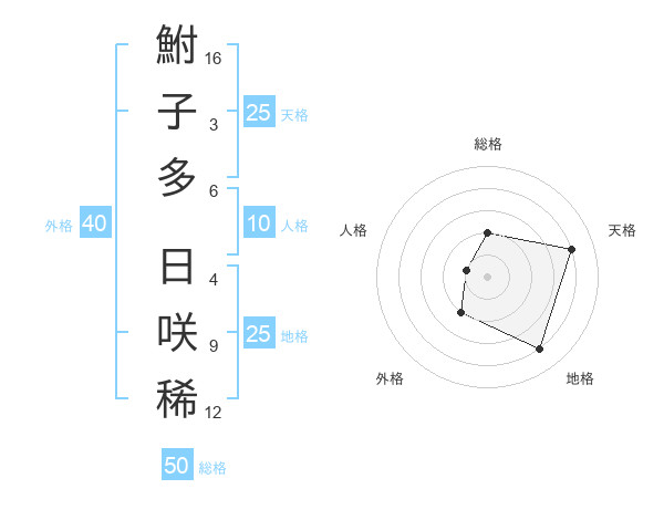 鮒子多 日咲稀さんを姓名の画数から五運を鑑定
