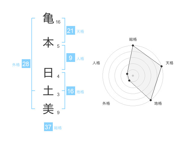 亀本 日土美さんを姓名の画数から五運を鑑定