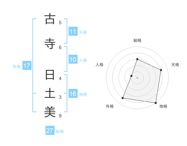 古寺 日土美さんを姓名の画数から五運を鑑定