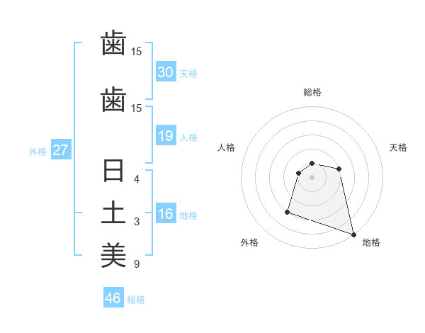 歯歯 日土美さんの天格は30画の2点!