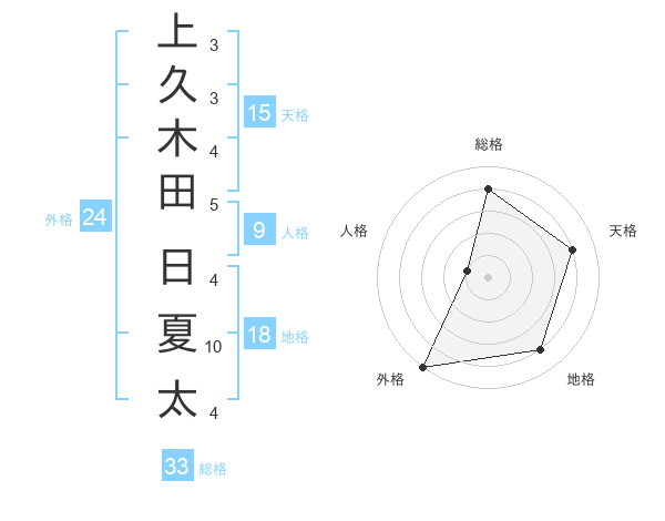 上久木田 日夏太さんの総格は33画の4点