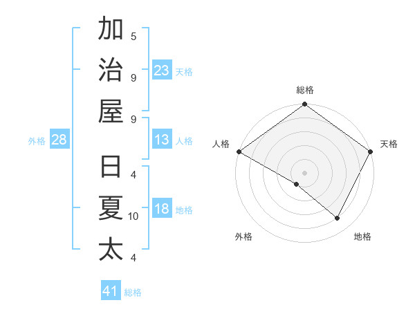 加治屋 日夏太さんを姓名の画数から五運を鑑定