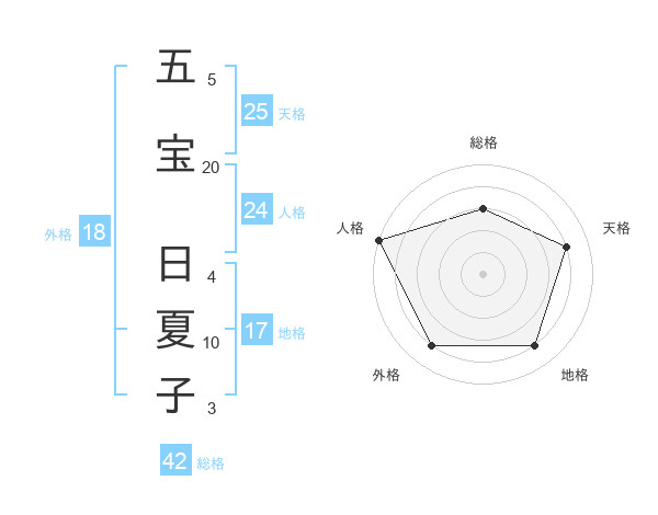 五宝 日夏子さんを姓名の画数から五運を鑑定