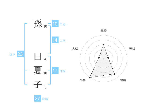 孫 日夏子さんの総格は27画の3点!