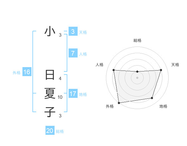 小 日夏子さんの外格は16画の5点